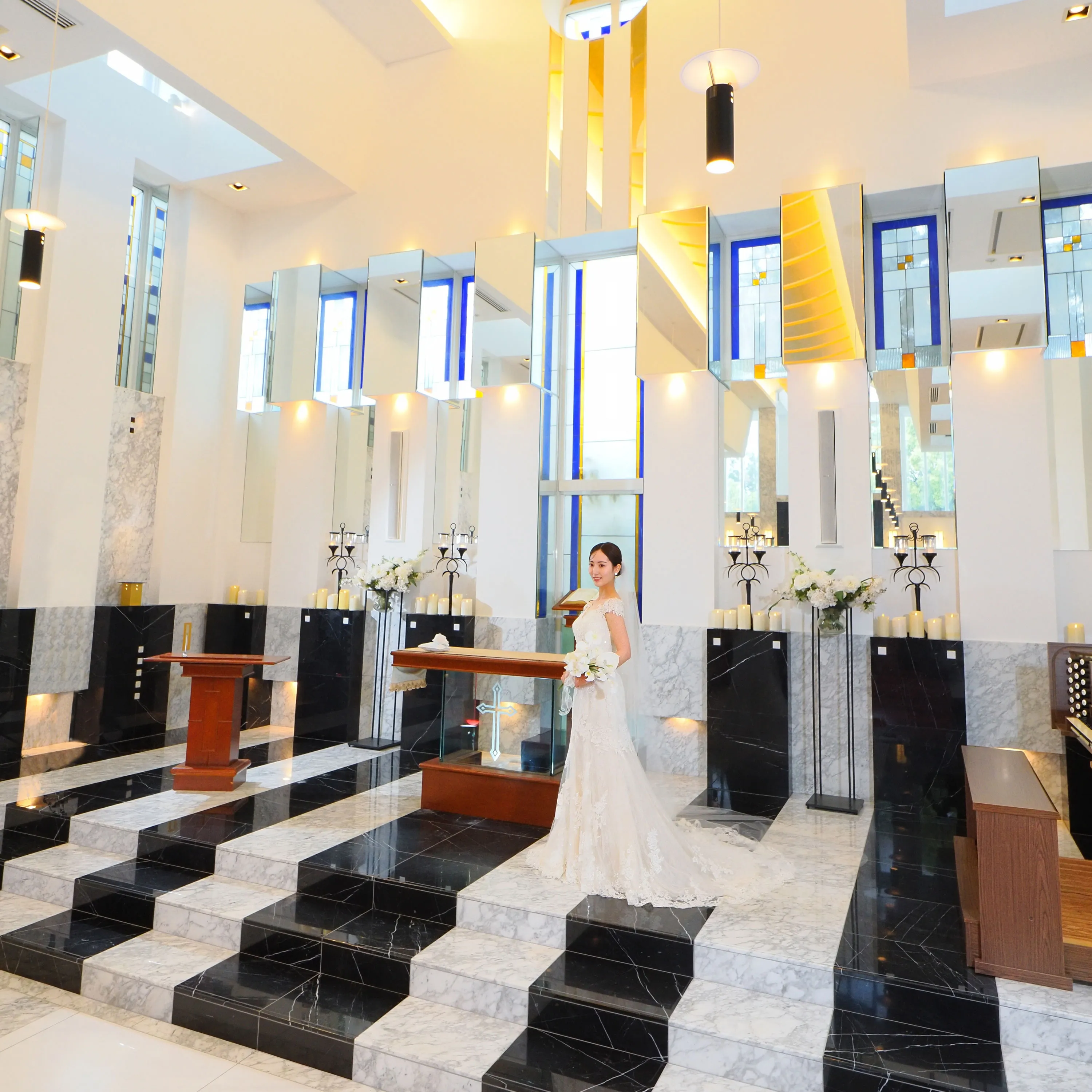 花嫁の白いドレス姿が一層美しく輝く光溢れるチャペル